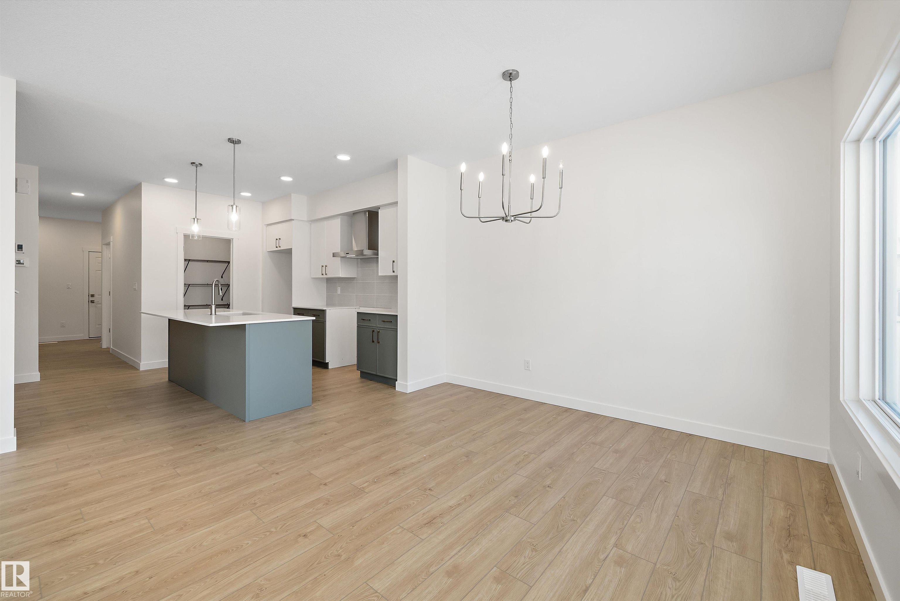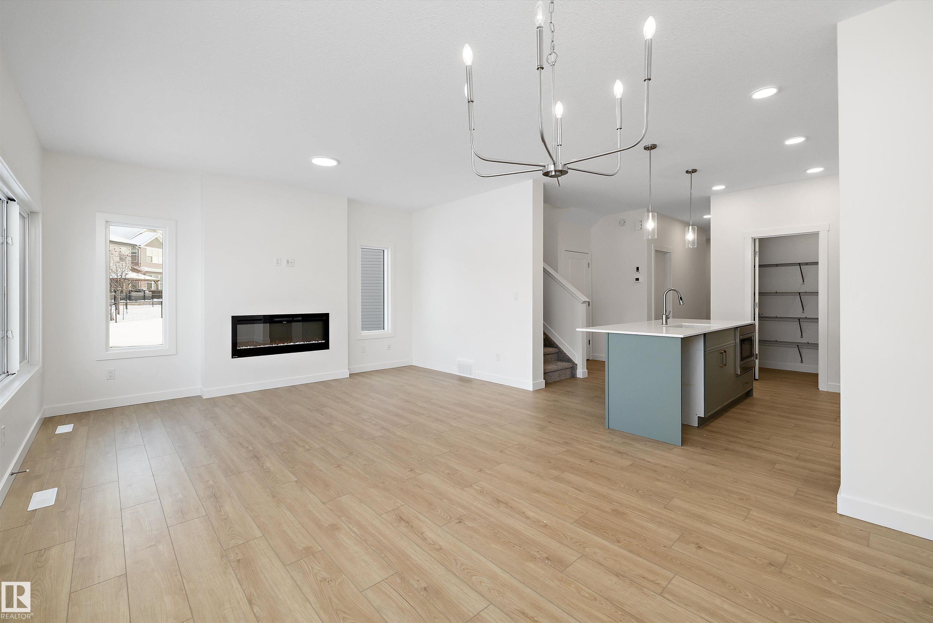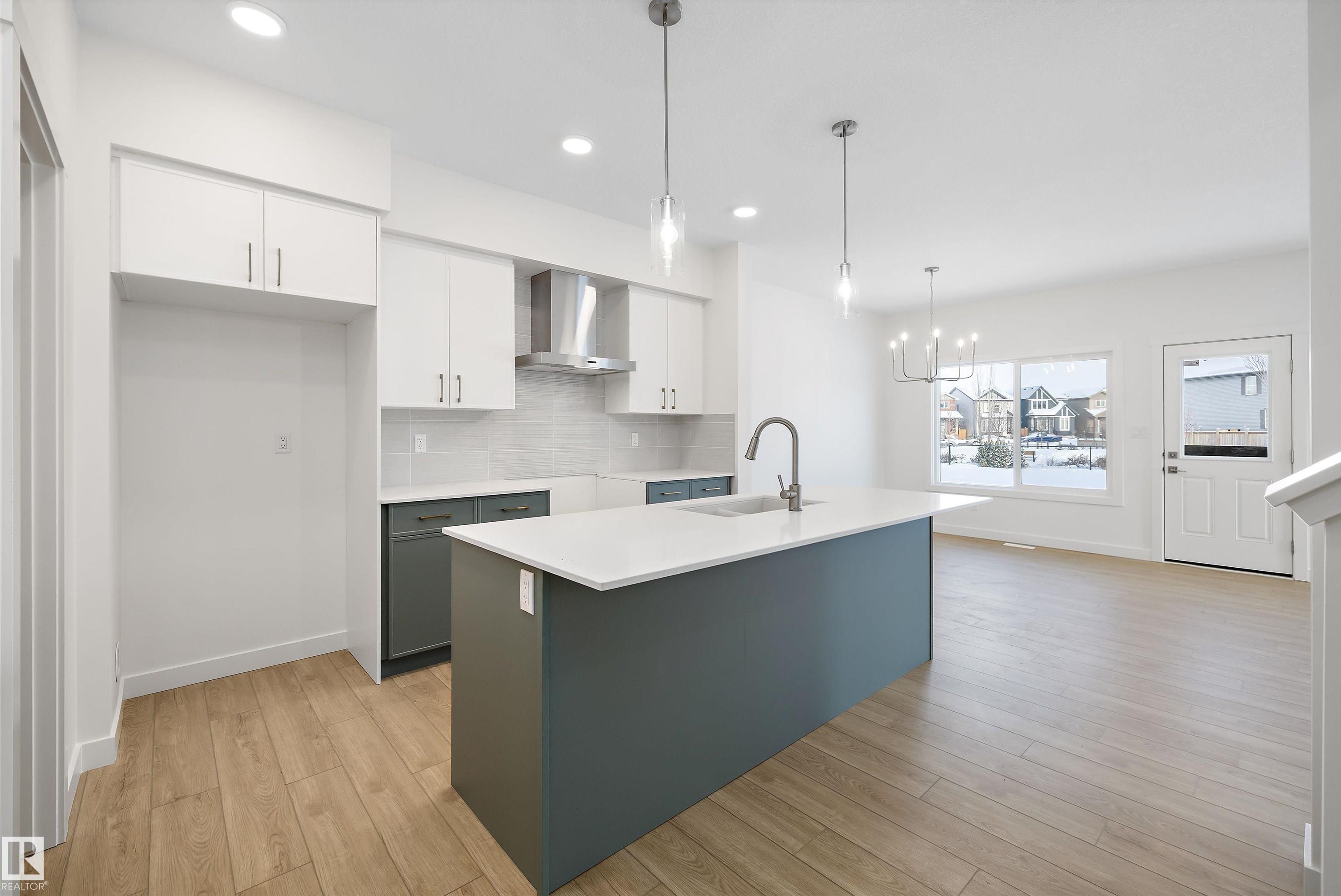 Built by Sterling Homes, this Affinity model is ideally located on an oversized pie-shaped lot backing onto quiet green space w/ scenic walking paths—offering rare privacy, added yard space & a peaceful natural setting. Perfect for families and outdoor enjoyment, this home combines an exceptional lot with modern design. The main floor features a rare main-floor (5th)bedroom with adjacent 3-piece bath, ideal for guests or multi-generational living. The open-concept great room with fireplace flows into a chef-inspired kitchen with quartz countertops, flush-ledge island, chimney-style hood fan, and soft-close cabinetry. Upstairs offers a spacious bonus room, a bright primary suite with large walk-in closet and 4-piece ensuite, three additional bedrooms, and a dedicated laundry area. Completing the home are a double attached garage, separate side entrance, brushed nickel fixtures, and the Sterling Signature Specification—delivering comfort, function, and an outstanding lifestyle setting.